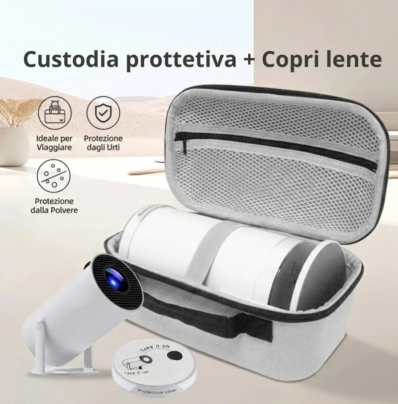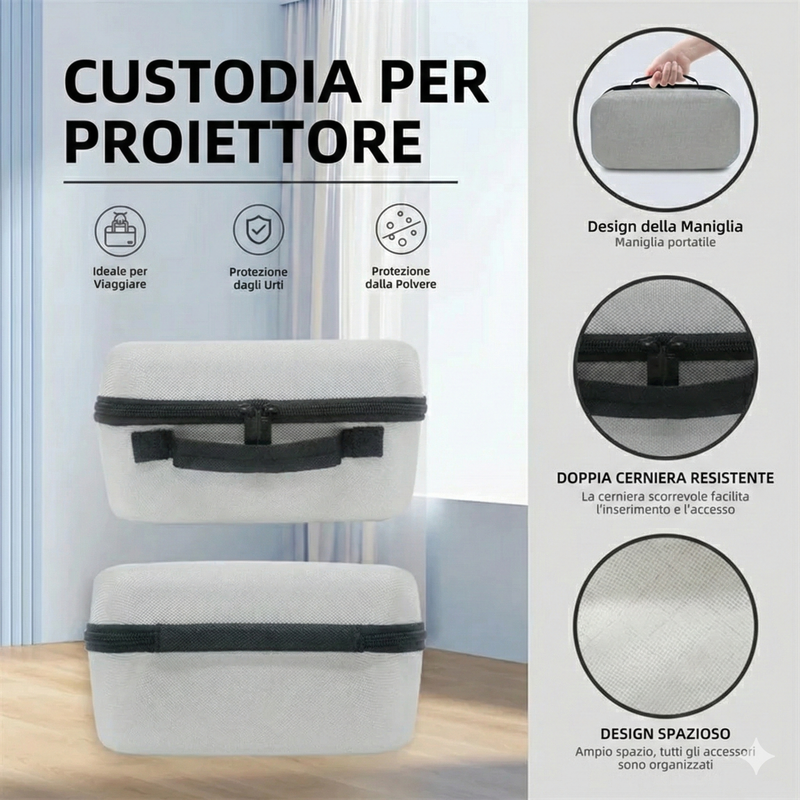 La custodia è progettata su misura per i proiettori portatili cilindrici più diffusi (serie HY300, HY320, Magcubic e Freestyle). Le dimensioni interne bloccano il dispositivo evitando che si muova.